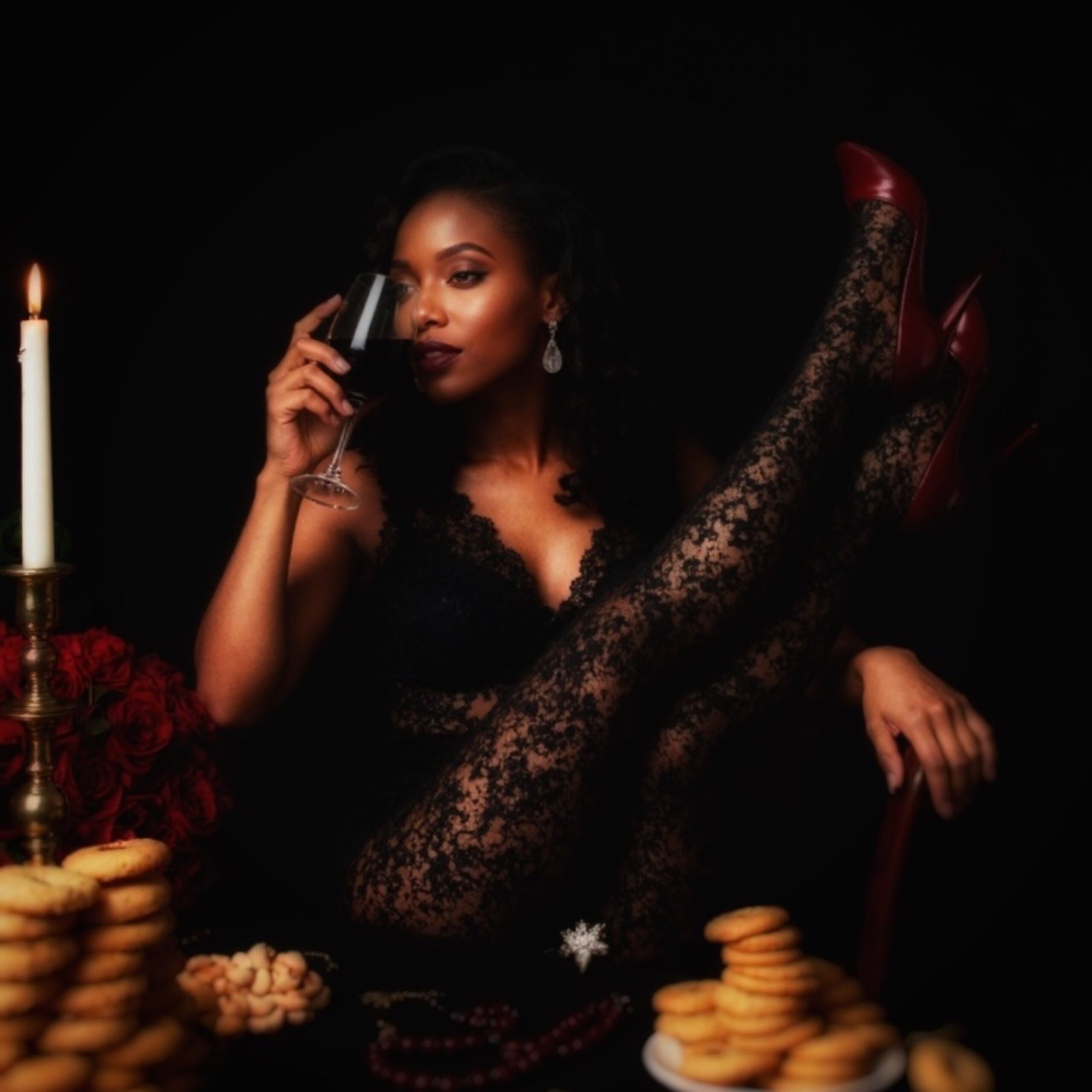 Velvet chains, red wine, and rhythm that begs for mercy. Silk shadows and silver glances, danger scored in a trap beat. Yana doesn’t chase the dream—she owns the fantasy.